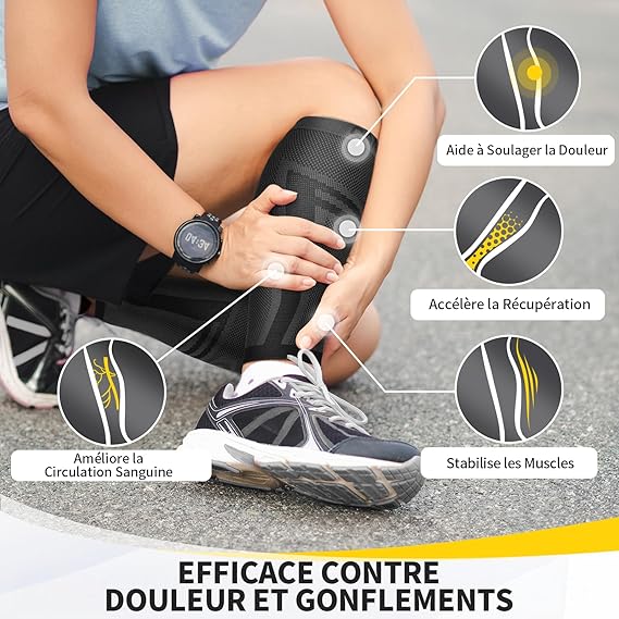 【Favorise la circulation sanguine des jambes】 Les manchons de mollet de compression sont spécialement conçus pour améliorer la circulation sanguine et réduire la douleur musculaire. En appliquant une pression précise, ils compressent les veines, réduisent le reflux sanguin et soulagent efficacement les varices. Ils favorisent également la circulation sanguine des jambes, éliminent l’œdème et réduisent la douleur.