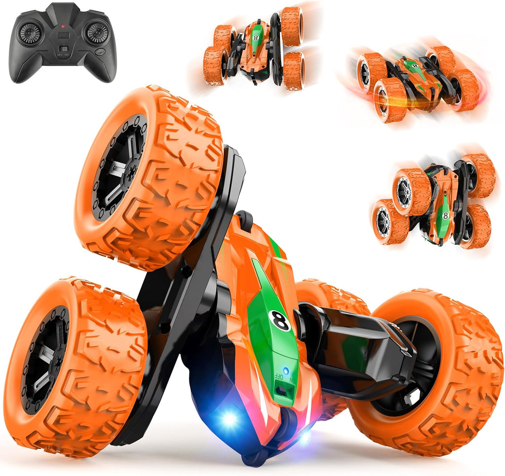 【Voiture cascadeuse double face】En plus des compétences de base que les voitures télécommandées ordinaires comprennent. Notre voiture de course à grande vitesse, avec son design double face, est équipée de 4 roues auxiliaires, 4 roues motrices, peut tourner à 360 degrés et se retourner, franchir facilement les obstacles et réaliser des cascades étonnantes.